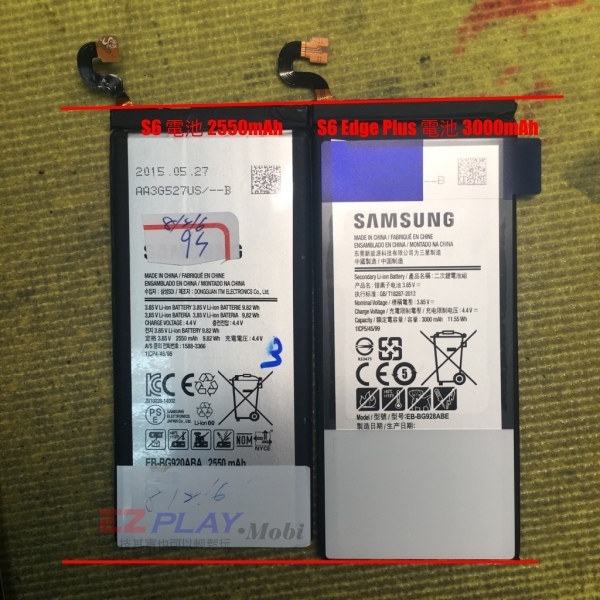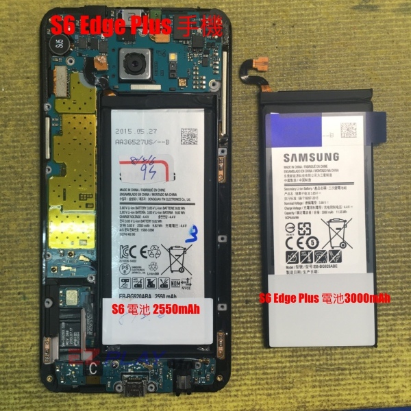 兩顆電池除了厚度有差異,長度也不一樣,更何況是電池容量了,S6 電池電容量只有2550mAh,而S6 Edge Plus 電池容量卻是3000mAh ,兩者相差可是15%的電力啊! 難怪小凌會說耗電比較快,因為手機的電池跟本就裝錯了還將錯就錯,遇到這樣的維修商家也只能自求多福了。